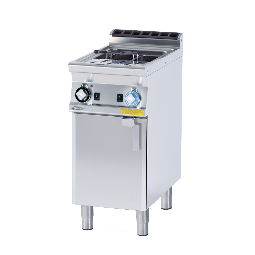 rozmer: 400x700x900mm(šxhxv); príkon plyn: 9,5kW; príkon elektro: 0,02kW/230V; počet vaní: 1ks; objem vane: 25 l; rozmer vane: 305x335x327mm(šxhxv); regulácia teploty: 30-100°C; piezo zapaľovanie; výpustný ventil; na podstavbe s dverami; koše nie sú v cene zariadenia; hrúbka plechu vrchnej dosky: 2mm; príslušenstvo na odjednávku: ; -koše