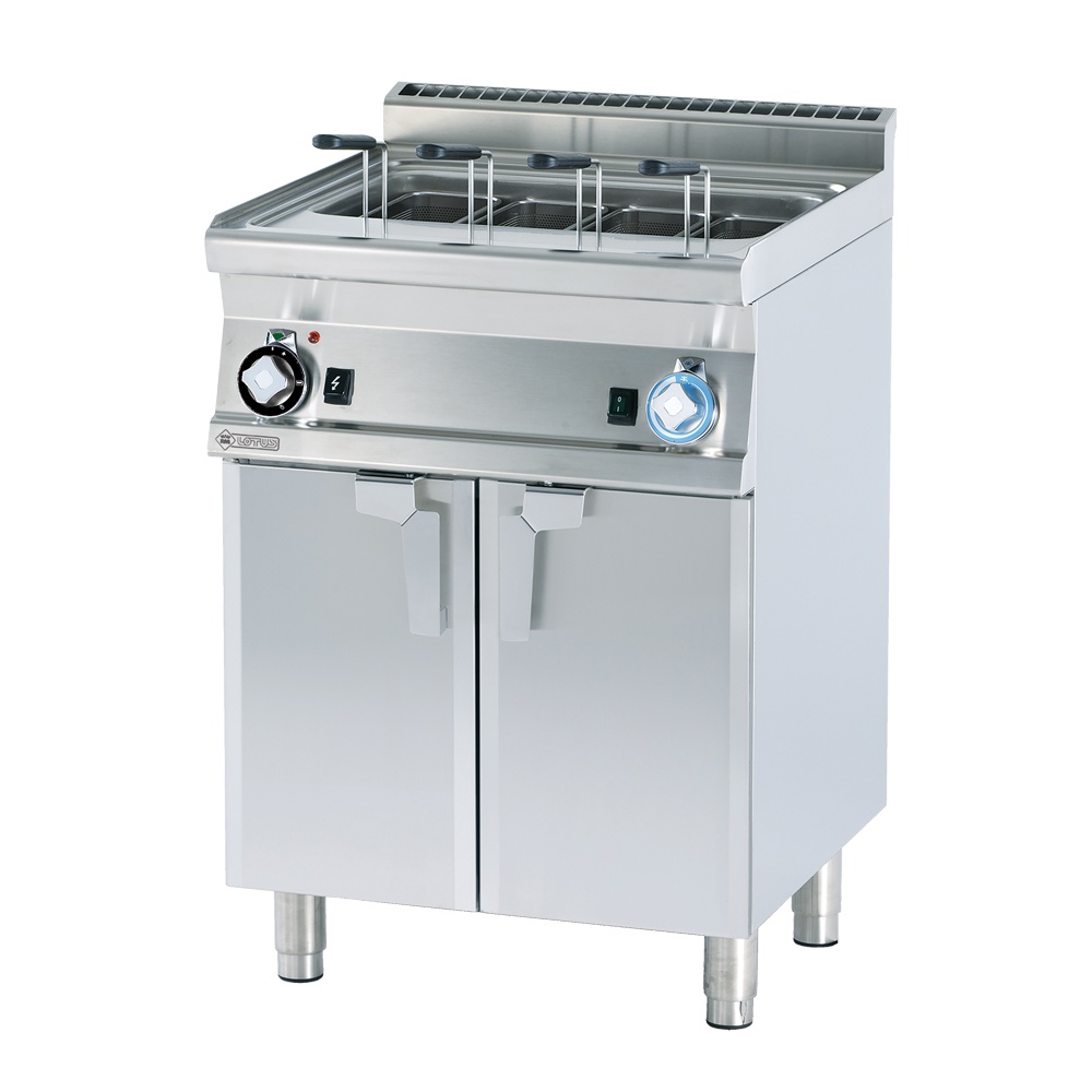 rozmer: 600x600x900mm(šxhxv); príkon plyn: 13,95kW; príkon elektro: 0,02kW/230V; počet vaní: 1; objem vane: 40 l; rozmer vane: 510x307x327mm(šxhxv); regulácia teploty: 30-100°C; výpustný ventil; na podstavbe s dverami; piezo zapaľovaniec; koše nie sú v cene zariadenia; príslušenstvo na objednávku: ; -koše