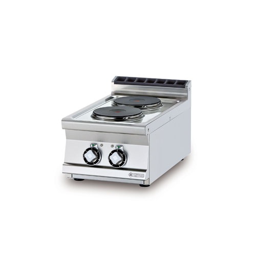 rozmer: 400x700x280mm(šxhxv); príkon elektro: 5,2kW/400V; elektrický príkon platní: 2×2,6kW; počet platní: 2ks; priemer platne: 220mm; hrúbka plechu vrchnej dosky: 2mm