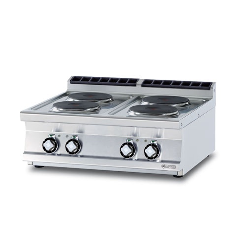 rozmer: 800x700x280mm(šxhxv); príkon elektro: 10,4kW/400V; elektrický príkon platní: 4×2,6kW; počet platní: 4ks; priemer platne: 220mm; hrúbka plechu vrchnej dosky: 2mm