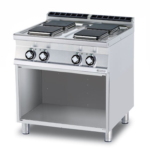 rozmer: 800x700x900mm(šxhxv); príkon elektro: 10,4kW/400V; elektrický príkon platní: 4×2,6kW; počet platní: 4ks; rozmer platne: 220x220mm(šxh); na otvorenej podstavbe; hrúbka plechu vrchnej dosky: 2mm; príslušenstvo na objednávku:; -dvere