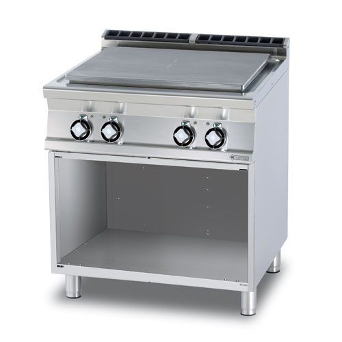 rozmer: 800x700x900mm(šxhxv); príkon elektro: 10kW/400V; elektrický príkon tálu: 10kW; počet varných zón: 4ks; rozmer tálu: 770x570mm(šxh); na otvorenej podstavbe; hrúbka plechu vrchnej dosky: 2mm; príslušenstvo na objednávku: ; -dvere