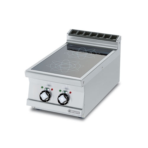 rozmer: 400x700x280mm(šxhxv); príkon elektro: 10kW/400V; elektrický príkon varných zón: 2x5kW; počet varných zón: 2ks; priemer varnej zóny: 300mm; hrúbka plechu vrchnej dosky: 2mm; minimálny priemer hrnca: 120mm
