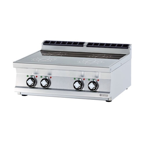 rozmer: 800x700x280mm(šxhxv); príkon elektro: 20kW/400V; elektrický príkon varných zón: 4x5kW; počet varných zón: 4ks; priemer varnej zóny: 300mm; hrúbka plechu vrchnej dosky: 2mm; minimálny priemer hrnca: 120mm