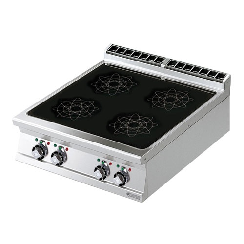 rozmer: 800x900x280mm(šxhxv); príkon elektro: 20kW/400V; elektrický príkon varných zón: 4x5kW; počet varných zón: 4ks; priemer varnej zóny: 300mm; hrúbka plechu vrchnej dosky: 2mm; minimálny priemer hrnca: 120mm