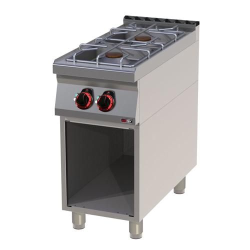 rozmer: 400x900x900mm(šxhxv); príkon plyn: 13kW; plynový príkon horákov: 1x5kW + 1x8kW; počet horákov: 2ks; na otvorenej podstavbe; zapaľovanie pilotným plameňom; nerezové rošty horákov; príslušenstvo na objednávku: ; -dvere