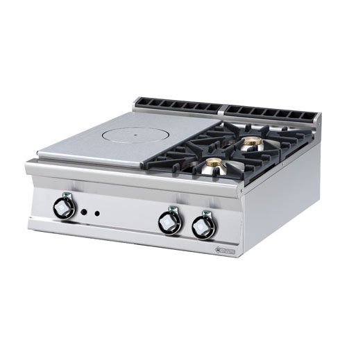 rozmer: 800x900x280mm(šxhxv); príkon plyn: 24kW; plynový príkon horákov: 1x7kW + 1x10kW; počet horákov: 2ks; plynový príkon tálu: 7kW; rozmer tálu: 370x730mm(šxh); zapaľovanie: horáky-pilotný plameň / tál-piezo; liatinové rošty horákov; hrúbka plechu vrchnej dosky: 2mm