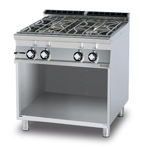 rozmer: 800x900x900mm(šxhxv); príkon plyn: 28kW; plynový príkon horákov: 2×5,5kW + 2×8,5kW; počet horákov: 4ks; varné plato s vodným systémom; prepadová trubka; napúšťací ventil; na otvorenej podstavbe; zapaľovanie pilotným plameňom; nerezové rošty horákov; hrúbka plechu vrchnej dosky: 2mm; príslušenstvo na objednávku: ; -dvere