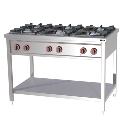rozmer: 1200x700x870mm(šxhxv); príkon plyn: 36kW; plynový príkon horákov: 2x4kW + 4x7kW; počet horákov: 6ks; na otvorenej podstavbe; dodávané štand.na zemný plyn; možnosť pretryskovať na propán-bután; dodávané v demontovanom stave – podstavba/vrchná časť