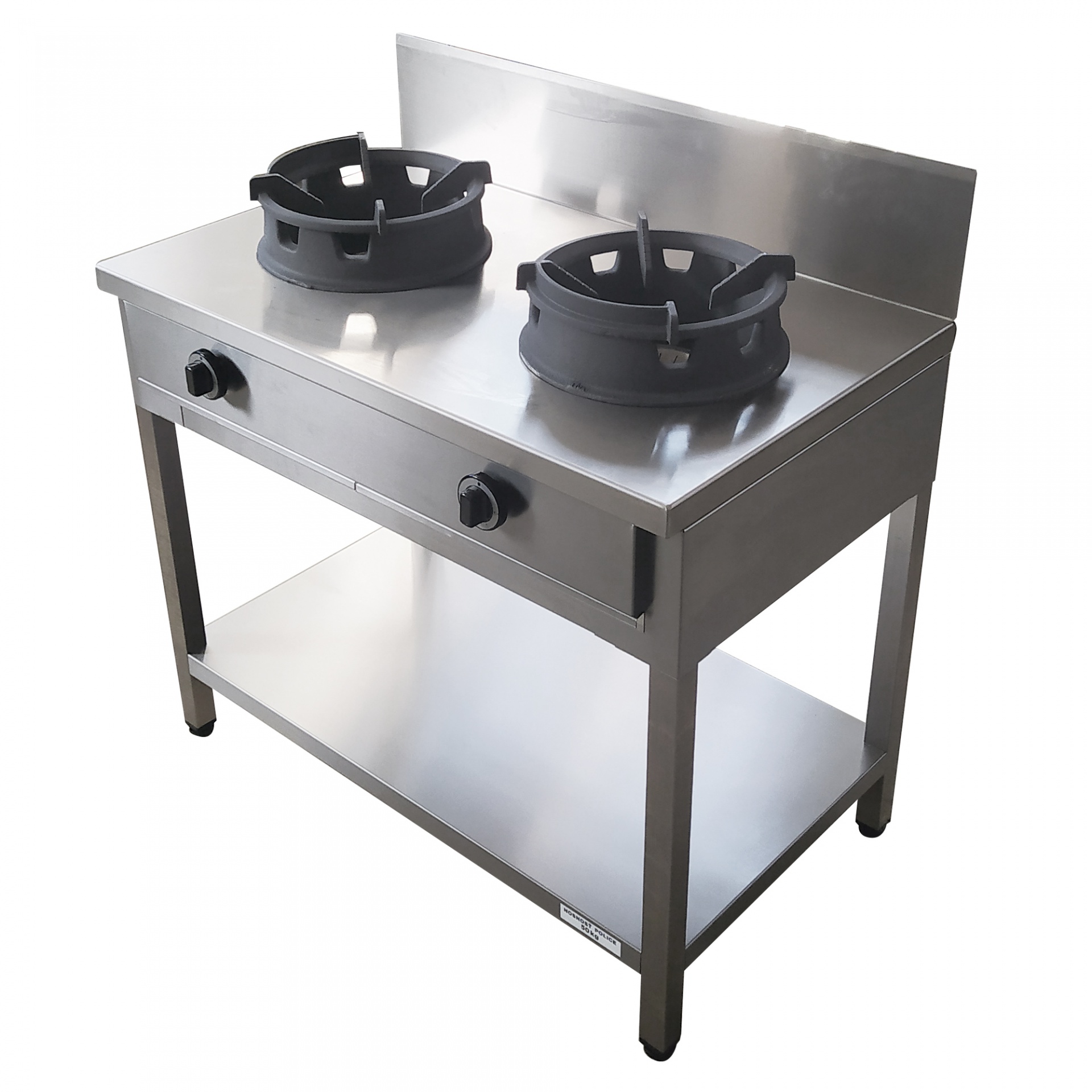 rozmer : 1000x600x850mm(šxhxv); príkon plyn: 36kW; plynový príkon horákov: 2x18kW; počet horákov: 2ks; vrátane WOK nádstavcov; zadný lem 200mm; 2x zásuv na zachytávanie nečistôt; otvorená podstavba; zapaľovanie pilotným plameňom
