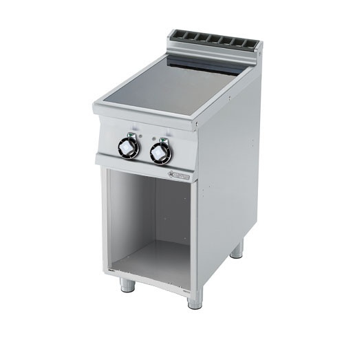 rozmer: 400x700x900mm(šxhxv); príkon elektro: 5kW/400V; elektrický príkon varných zón: 2×2,5kW; počet varných zón: 2ks; priemer varnej zóny: 300mm; na otvorenej podstavbe; hrúbka plechu vrchnej dosky: 2mm; príslušenstvo na objednávku: ; -dvere