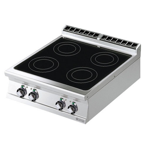 rozmer: 800x900x280mm(šxhxv); príkon elektro: 13,6kW/400V; elektrický príkon varných zón: 4×3,4kW; počet varných zón: 4ks; priemer varnej zóny: 300mm; hrúbka plechu vrchnej dosky: 2mm