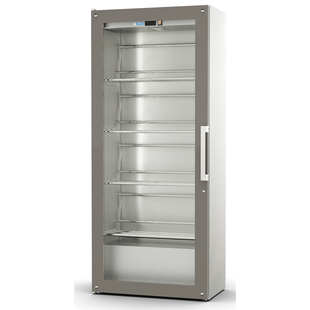 rozmer: 820x515x1940mm(šxhxv); príkon elektro: 0,52kW/230V; objem: 400 l; kapacita fliaš: 113ks; uloženie fliaš: nastojato/našikmo; počet roštov: 4; prevedenie roštov: nerez; chladenie: statické; vonkajšie prevedenie: šedá; vnútorné prevedenie: šedá; počet teplotných zón: 1; prev. teplota: 0/+15°C; elektronická riadiaca jednotka; vnútorné osvetlenie LED; max. teplota/vlhkosť okolia +25°C / 60%R.H.
