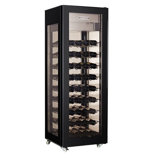rozmer: 660x660x1900mm(šxhxv); príkon elektro: 0,636kW/230V; kapacita fliaš: 81ks; uloženie fliaš: naležato/našikmo; počet roštov: 9; prevedenie roštov: kovové; chladenie: ventilované; vonkajšie prevedenie: čierna; vnútorné prevedenie: šedá; počet teplotných zón: 1; prev. teplota: +5/+18°C; elektronická riadiaca jednotka; vnútorné osvetlenie LED; max. teplota/vlhkosť okolia +25°C / 60%R.H.; 4 kolieska