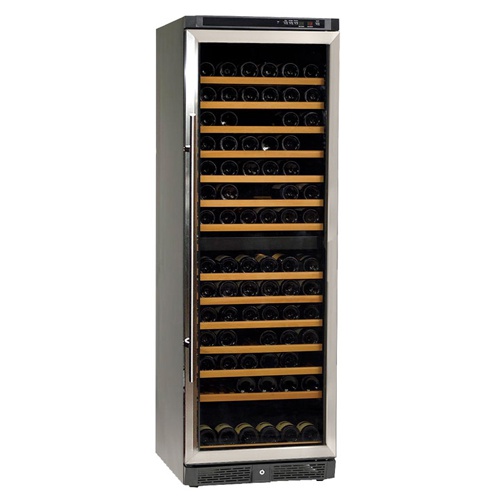 rozmer: 595x680x1800mm(šxhxv); príkon elektro: 0,23kW/230V; objem: 380 l; kapacita fliaš: 155ks/0,75l; uloženie fliaš: naležato; počet roštov: 14/výsuvné; prevedenie roštov: drevo; chladenie: ventilované; vonkajšie prevedenie: čierna; vnútorné prevedenie: čierna; počet teplotných zón: 2; prev. teplota: +5 / +10 / a +10 / +18; elektronická riadiaca jednotka; samostatné ovládanie hornej a dolnej časti; max. teplota/vlhkosť okolia +25°C / 60%R.H.; zámok