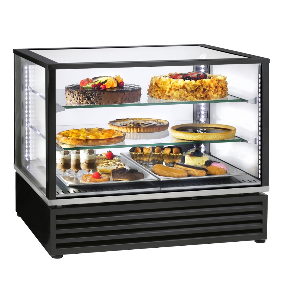 rozmer: 785x675x720mm(šxhxv); príkon elektro: 0,39kW/230V; objem: 169 l; počet políc: 2ks; prevedenie políc: sklené; prev. teplota: +2/+10°C ; elektronická riadiaca jednotka; automatické odmrazovanie; chladenie: ventilované; LED osvetlenie políc; max. teplota/vlhkosť okolia +25°C / 60%R.H.; posuvné sklené dvierka zo strany obsluhy; bez gastronádob