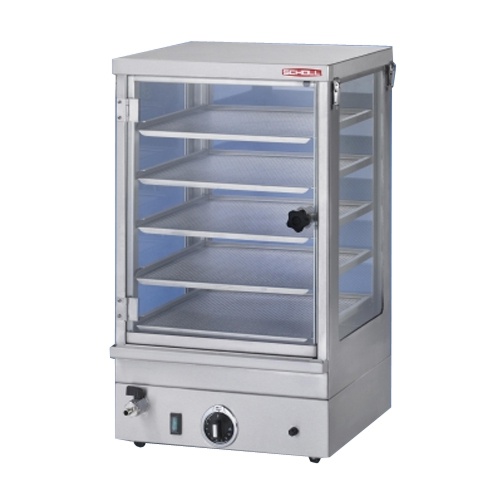 rozmer: 400x400x680mm(šxhxv); príkon elektro: 1,8kW/230V; počet políc: 4; zásuvy vhodné pre GN2/3 – 65mm; prevedenie police: roštová; regulácia teploty: 30-110°C; zvlhčovanie z nádoby; vhodná na udržiavanie parených buchiet, knedlí