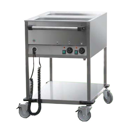 rozmer: 906x649x900mm(šxhxv); príkon elektro: 1,4kW/230V; kapacita: 2 x GN1/1 – 200mm; regulácia teploty: 30-90°C; ovládanie na kratšej strane; samost. ovládanie každej vane; 2 x výpustný ventil; polica; 4 kolieska, 2 brzdené; príslušenstvo na objednávku: ; -gastronádoby