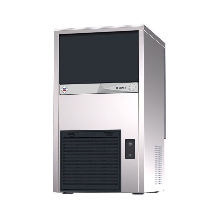 rozmer: 390x470x690mm(šxhxv); príkon elektro: 0,27kW/230V; produkcia: 29kg/deň; kapacita zásobníka: 9kg; tvar ľadu: kocka/23g; chladenie: vzduch; spotreba vody: 4,5 l/kg ľadu; automatický čistiaci cyklus; produkcia je uvádzaná za 24h pri teplote vody 15°C a teplote okolia 21°C; dvierka z ABS plastu; odpadové čerpadlo