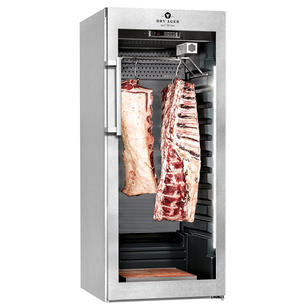 rozmer: 700x742x1650mm(šxhxv); príkon elektro: 1,8kW/230V; objem: 435 l; maximálne zaťaženie: 2-3 hovädzie štvrte do dĺžky 1,2m; maximálne zaťaženie pri zavesení: 80kg; max zaťaženie police: 40kg; regulácia teploty: 0-30°C; elektronická riadiaca jednotka s reguláciou vlhkosti; SMART AGING® – AUTOMATICKÉ PROGRAMY ZRENIA ; UHLÍKOVÝ FILTER + UVC STERILIZÁCIA; dvere: presklenné; vonkajšie prevedenie: nerez; vnútorné prevedenie: antibakteriálny plast; zámok; optický a akustický alarm; LED osvetlenie; základné príslušenstvo:; -konzola na vešanie; príslušenstvo na objednávku:; -Himalájska soľ a tácka pre soľ; -police pre mäso, salámy, syr/víno; -háky na vešanie